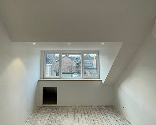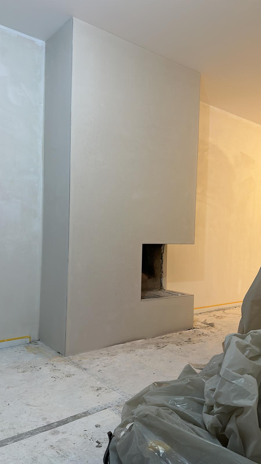 We brengen we het stucwerk zorgvuldig en gelijkmatig aan, laag voor laag, zodat de wanden en plafonds perfect vlak worden.
